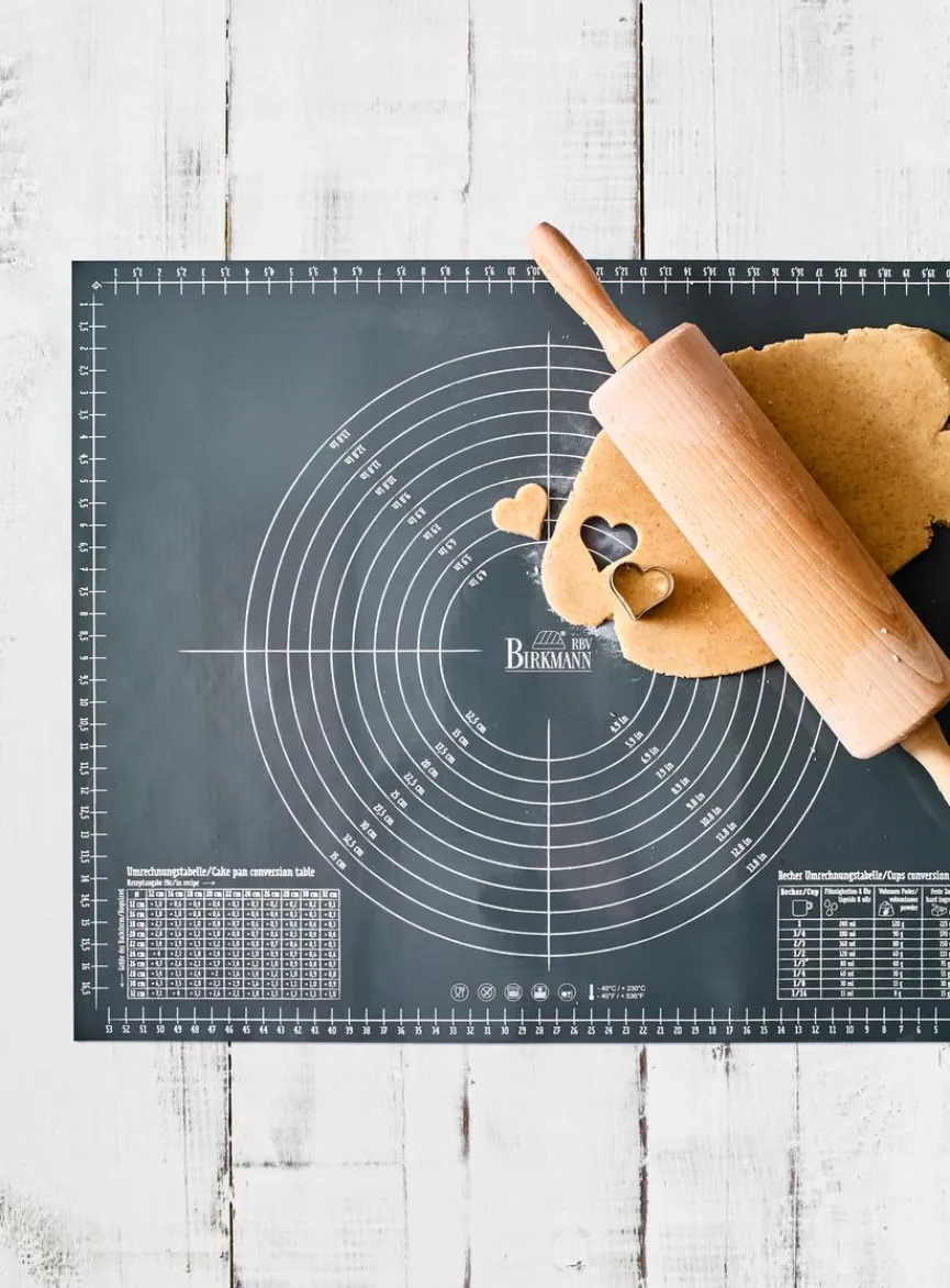 Küchenfeen, Hobbykonditoren oder auch Anfänger sind von der Ausrollmatte EasyBaking 45×55 cm gleichermaßen begeistert. Egal, ob für Plätzchenteig, gleichmäßig ausgerollte Kuchenböden oder Fondant zur Verzierung, auf dieser Matte gelingt das Auswalken von Teig sowie das Ausstechen und Ablösen kleinerer Elemente spielend. Die aufgedruckte Skalierung und praktische Umrechnungstabelle sind Extras, die die Ausrollmatte EasyBaking 45×55 cm zum raffinierten Küchenaccessoire mit praktischem Mehrwert machen.