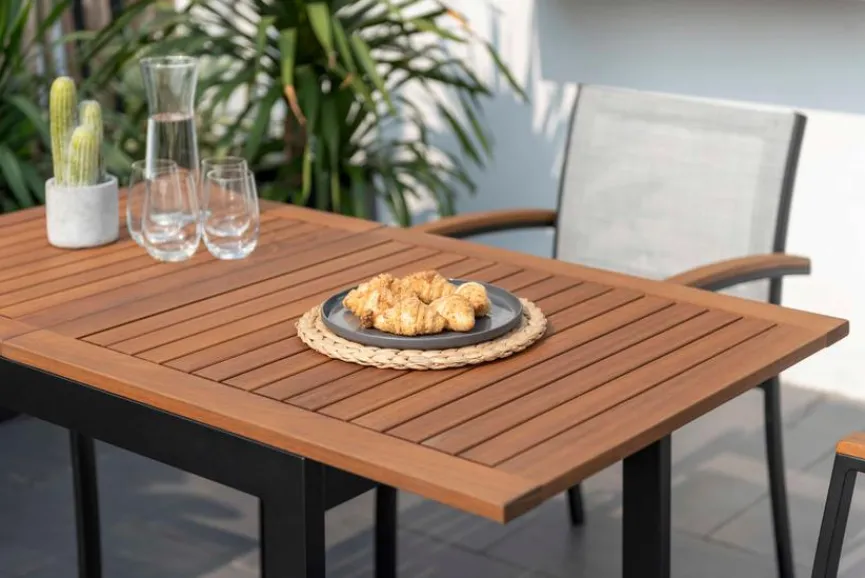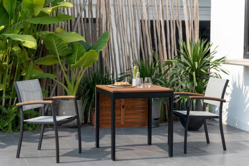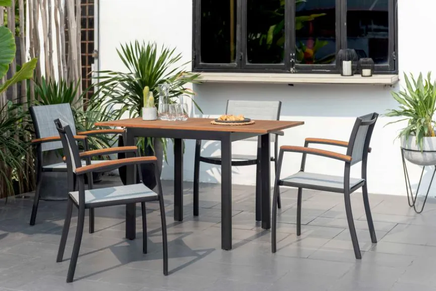 Entdecken Sie den Balkontisch ausziehbar Compact 70/126×75 cm, der ein wahres Meisterwerk aus Holz und Aluminium ist. Mit einer Auszugsfunktion bietet er Flexibilität für jeden Anlass. Sein Gestell aus pulverbeschichtetem Aluminium und die Tischplatte aus Eukalyptusholz verleihen Ihrem Balkon einen Hauch von Eleganz. Genießen Sie mit dem Balkontisch ausziehbar Compact 70/126×75 cm den Sommer!