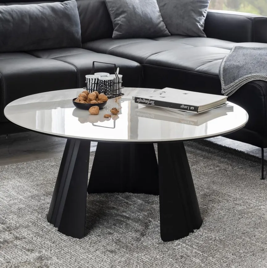 Der Couchtisch Nola ist mit seinem futuristischen Design der Hingucker für Ihr Wohnzimmer. Mit seinen drei breiten Füßen bietet der Wohnzimmertisch einen sicheren Stand sowie eine leicht zu reinigende Ablagefläche aus Glas für Ihre Utensilien. Der Couchtisch Nola ist die ideale Ergänzung für einen modernen Einrichtungsstil.