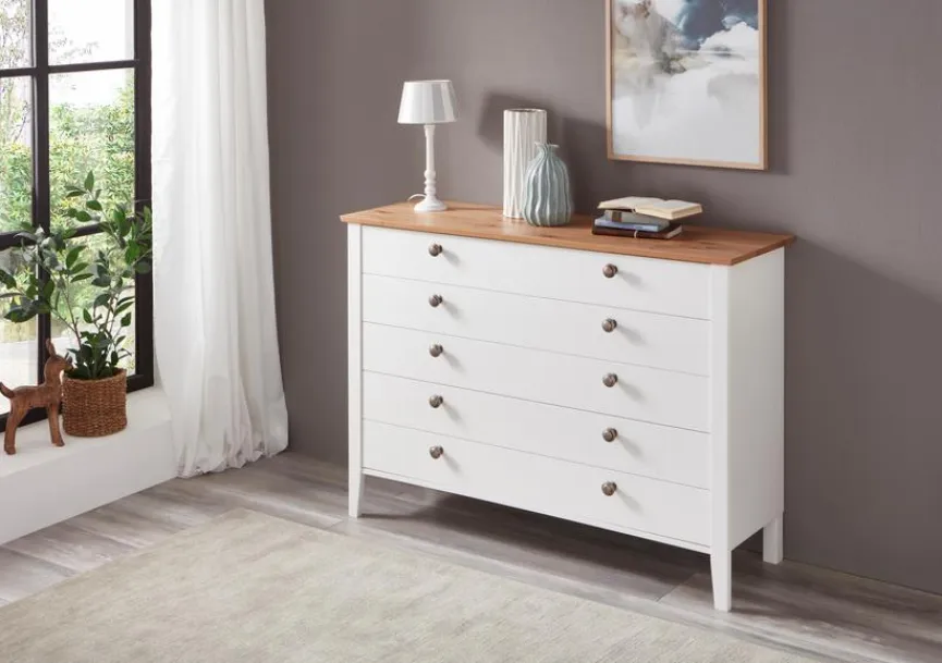 Mit der Kommode Castellino präsentiert der Hersteller C.DISSELKAMP ein elegantes und funktionelles Möbelstück. Klassische Formen, ein unifarbener Anstrich und eine farblich abgesetzte Abdeckplatte verleihen der Kommode ein attraktives Äußeres. Zudem begeistert die Kommode Castellino von C.DISSELKAMP durch eine hohe Material- und Verarbeitungsqualität.