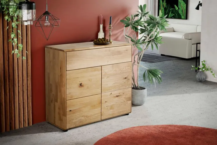 Die hochwertige Kommode Skagen von G+K eignet sich perfekt für den Wohnbereich oder den Flur. Insbesondere die ausdrucksstarke Holzoptik verleiht jedem Zimmer einen natürlichen Flair. Gleichzeitig erweist sich die Kommode Skagen aufgrund der durchdachten Einteilung als praktischer Ordnungshelfer. So verstauen Sie Ihre Schätze auf stilvolle Art und sorgen für ein aufgeräumtes Ambiente.