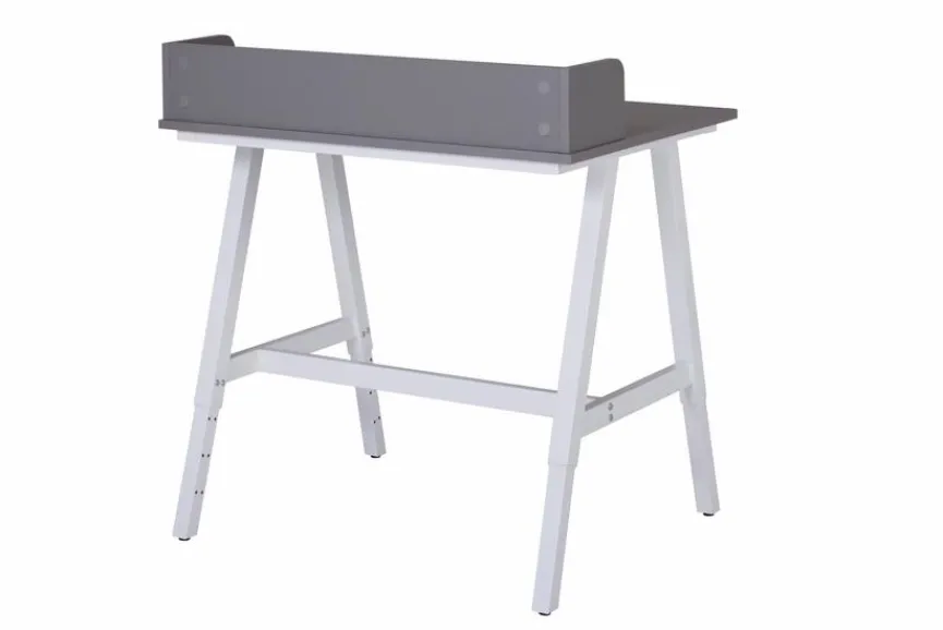 - Aus Holzwerkstoff (MDF) mit kratzfester Melaminharzfolie in grau, Gestell aus Metall in weiß