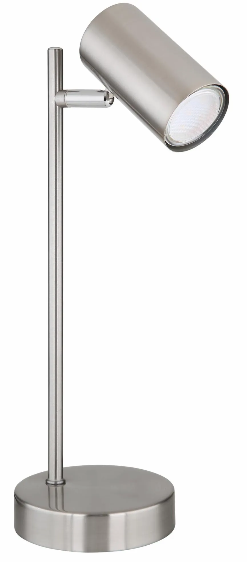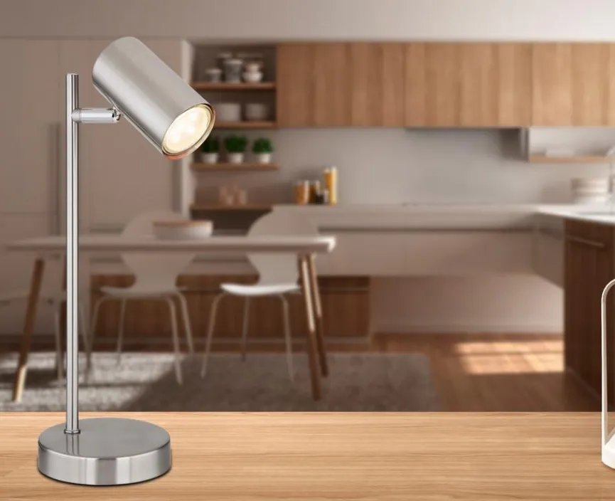 Die Tischleuchte Robby von Globo überzeugt mit einem einfachen und modernen Design. Egal ob Sie eine Tischlampe zur Beleuchtung des Schreibtisches oder ein Leselicht auf Ihrem Nachttisch benötigen – die Tischleuchte Robby bietet eine ideale Lösung. Dank des beweglichen Kopfes und des stabilen Fußes der Tischlampe lässt sich die Leuchtrichtung optimal einstellen, sodass Sie in jeder Situation eine gute Lichtquelle haben.