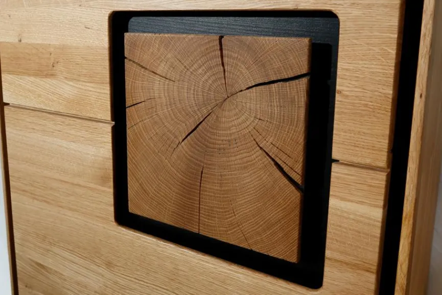 Für Massivholz – auch Vollholz – werden Querschnitte aus einem Baumstamm herausgearbeitet und durch Bohren, Fräsen oder Hobeln weiterverarbeitet. Das Material ist ein echtes Naturprodukt, das in seiner Struktur und Farbe einzigartig ist.