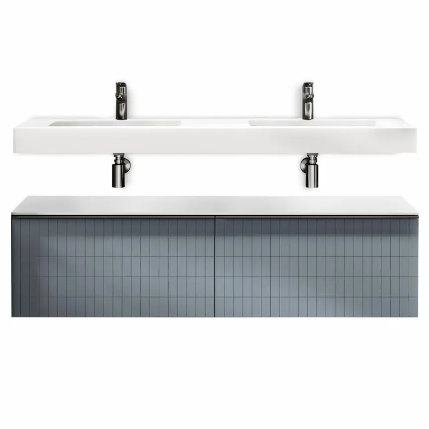 - 2x Waschtischunterschrank mit je 1 Auszug mit der Fronttype Grid und Griffleiste in schwarz matt