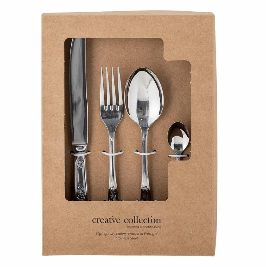 Mit seinen filigranen, verspielten Mustern erinnert das Besteck Tilly 4tlg. an Omas gutes, altes Tafelsilber, das nur zu besonderen Gelegenheiten hochpoliert auf den fein eingedeckten Tisch kam. Im Gegensatz zu früher bedarf dieses Tafelbesteck keiner speziellen Pflege, sondern kann auch im Alltag ganz unkompliziert für festliches oder gar royales Feeling am Esstisch sorgen. Das Besteck Tilly 4tlg. eignet sich perfekt für ein 3-Gänge-Menü.