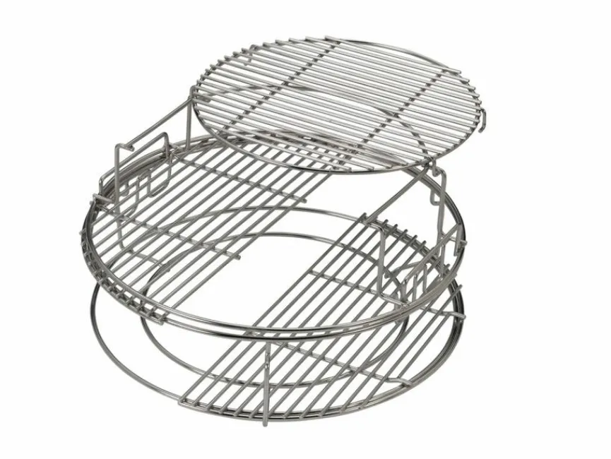 - Set besteht aus 1x zweiteilige Rosterhöhung, 1x runder Grillrost, 1x ConvEggtor-Korb, 2x halbrunde Edelstahlroste