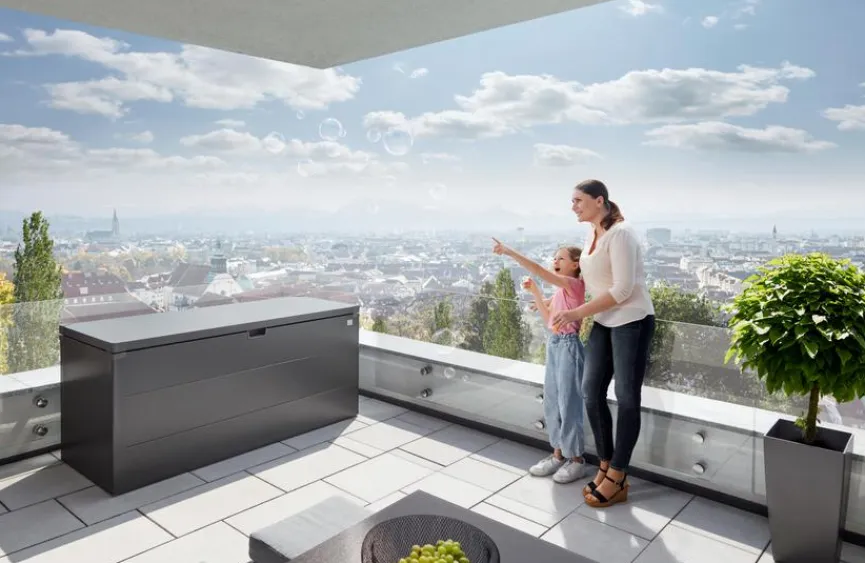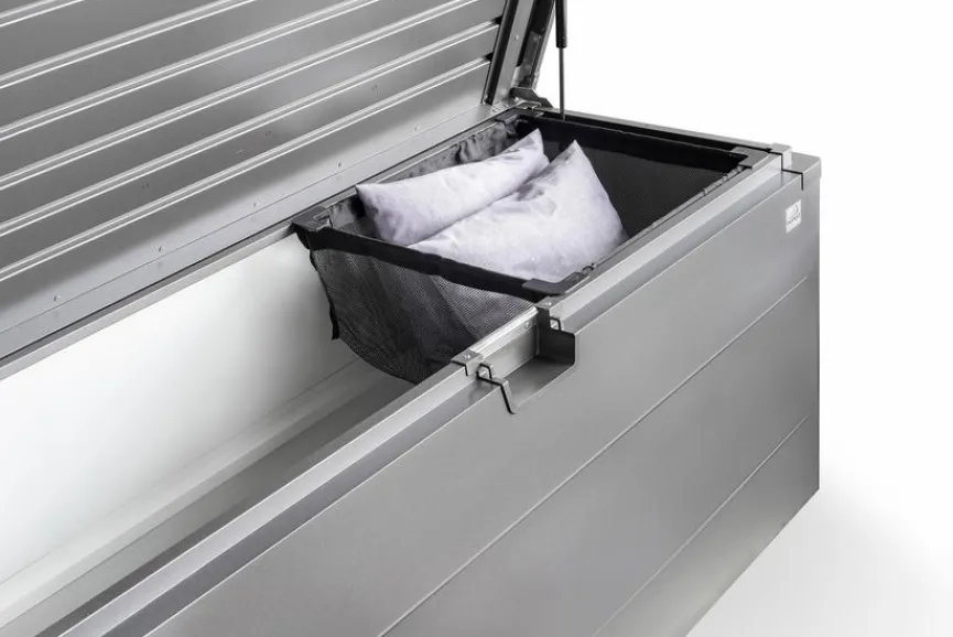 Wer einen Grünanlage besitzt, liebt die Gartenbox Stylebox 140 cm von biohort mit ihrem umfangreichen Stauraum. Die Truhe im stylischen Look zeichnet sich durch ein attraktives Design, klare Linien und hochwertige Verarbeitung aus. Nutzen Sie die regenwasserdichte und witterungsbeständige Kiste im Außenbereich, auf der Terrasse, im Schuppen oder im Wintergarten. In der Gartenbox Stylebox 140 cm lassen sich Sitzkissen, Liegenauflagen und sonstige Accessoires sicher verwahren.