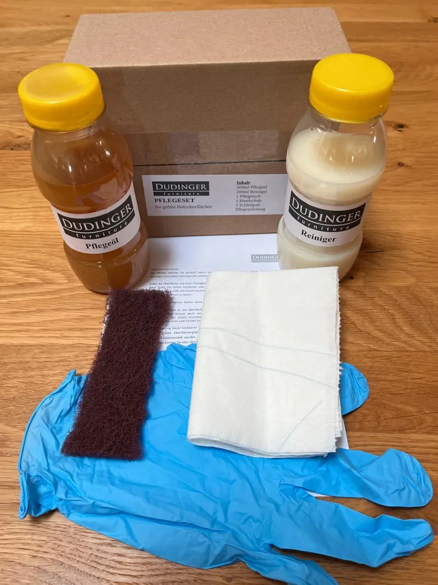 - Mit 200 ml Öl, 200 ml, Reiniger, Schleifflies, Tuch und Einweghandschuhen