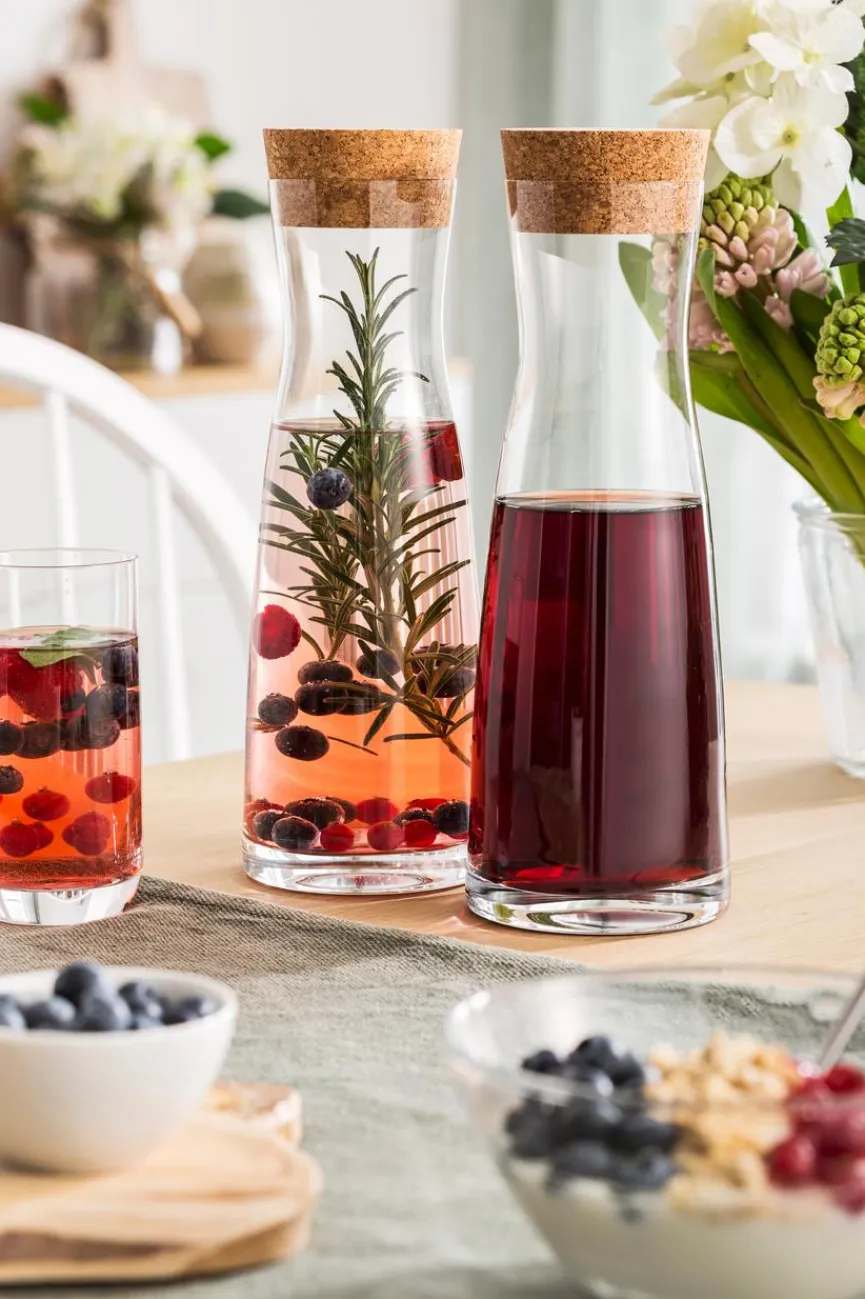 Schön schlicht präsentiert sich die schicke Karaffe 1000 ml von BOHEMIA Cristal, die zu einem kultivierten Ambiente beiträgt. Sie können kalte Getränke wie Wasser, Saft, Eistee oder Schorle einfach in das hochwertige Gefäß umfüllen und stilvoll servieren. Wer mag, verfeinert seine Erfrischungen mit Eiswürfeln, Zitronenscheiben oder Minzblättern, was in der transparenten Karaffe 1000 ml besonders dekorativ aussieht.