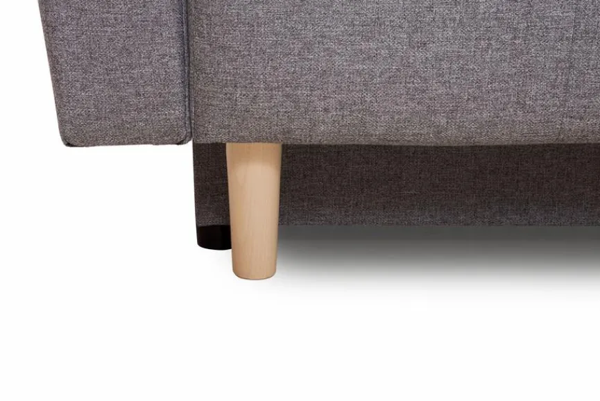 - Bezug aus Stoff in grau, Füße Holz natur und Kunststoffgleiter in schwarz