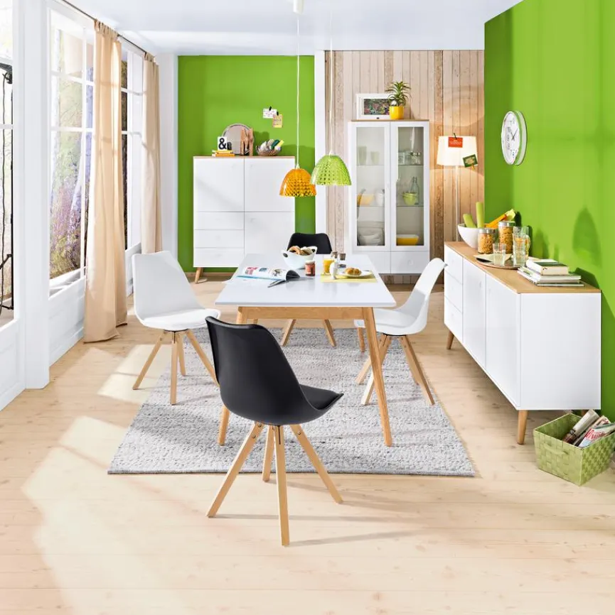 Der Stuhl Lilly besteht aus Massivholzbeinen, einem Kunststoffsitz und einem Sitzkissen in Lederoptik. Dieser Material-Mix lässt ihn im beliebten skandinavischen Stil erscheinen. Mit dem Stuhl Lilly sind viele Möglichkeiten des Kombinierens mit anderen, bereits vorhandenen Möbeln und Wohnaccessoires gegeben. Dieses Möbelstück wird auch durch sein bequemes Polster im Nu zum Lieblingsstück.