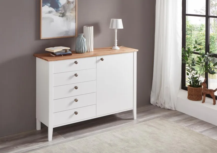 Mit der Kommode Castellino präsentiert der Hersteller C.DISSELKAMP ein elegantes und funktionelles Möbelstück. Klassische Formen, ein unifarbener Anstrich und eine farblich abgesetzte Abdeckplatte verleihen der Kommode ein attraktives Äußeres. Zudem begeistert die Kommode Castellino von C.DISSELKAMP durch eine hohe Material- und Verarbeitungsqualität.