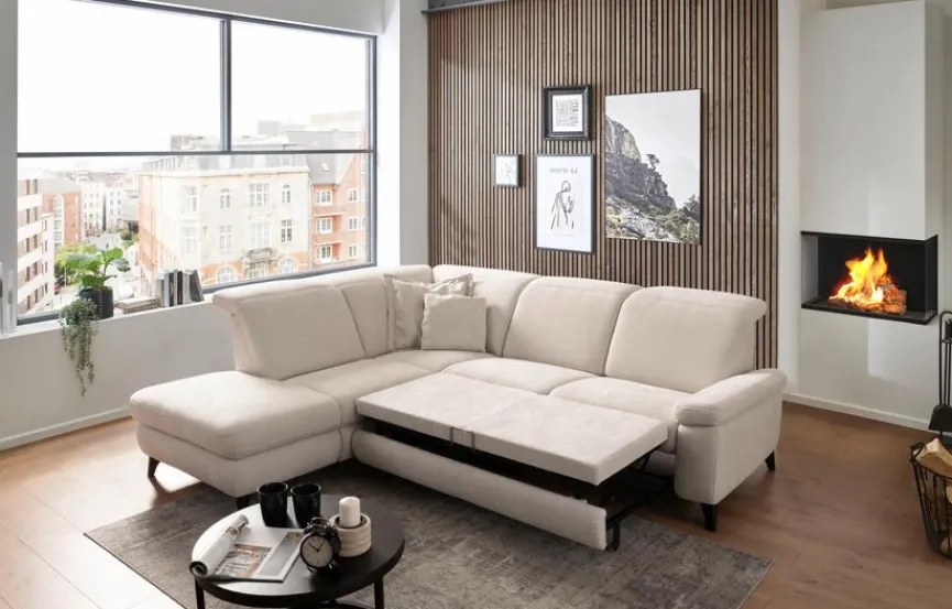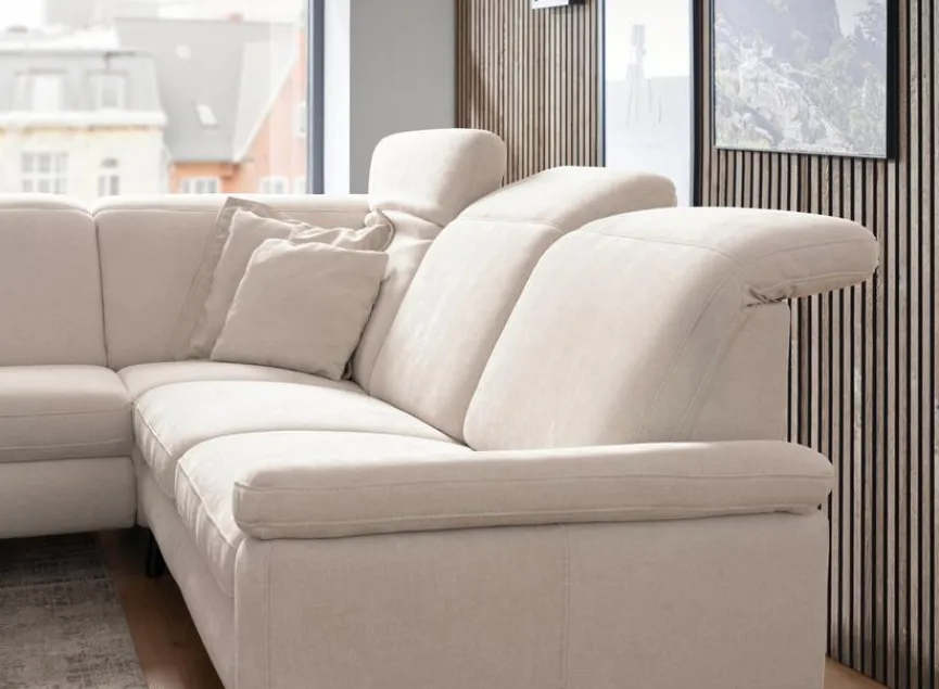 - inkl. Querschläfer echt bezogen im 2-Sitzer, Schubkasten in der Ottomane, Armteilverstellung beim 2-Sitzer und Kopfteilverstellung bei dem kompletten Ecksofa