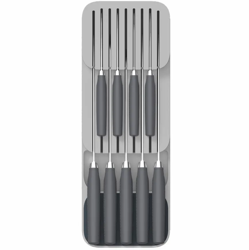Mit dem Besteckeinsatz Drawer Store aus dem Hause Joseph Joseph ist es ein Kinderspiel, für mehr Ordnung in der Besteckschublade zu sorgen. Dank der smarten Aufteilung bietet der Besteckeinsatz Drawer Store von Joseph Joseph Platz für jede Menge kleine und auch große Messer.