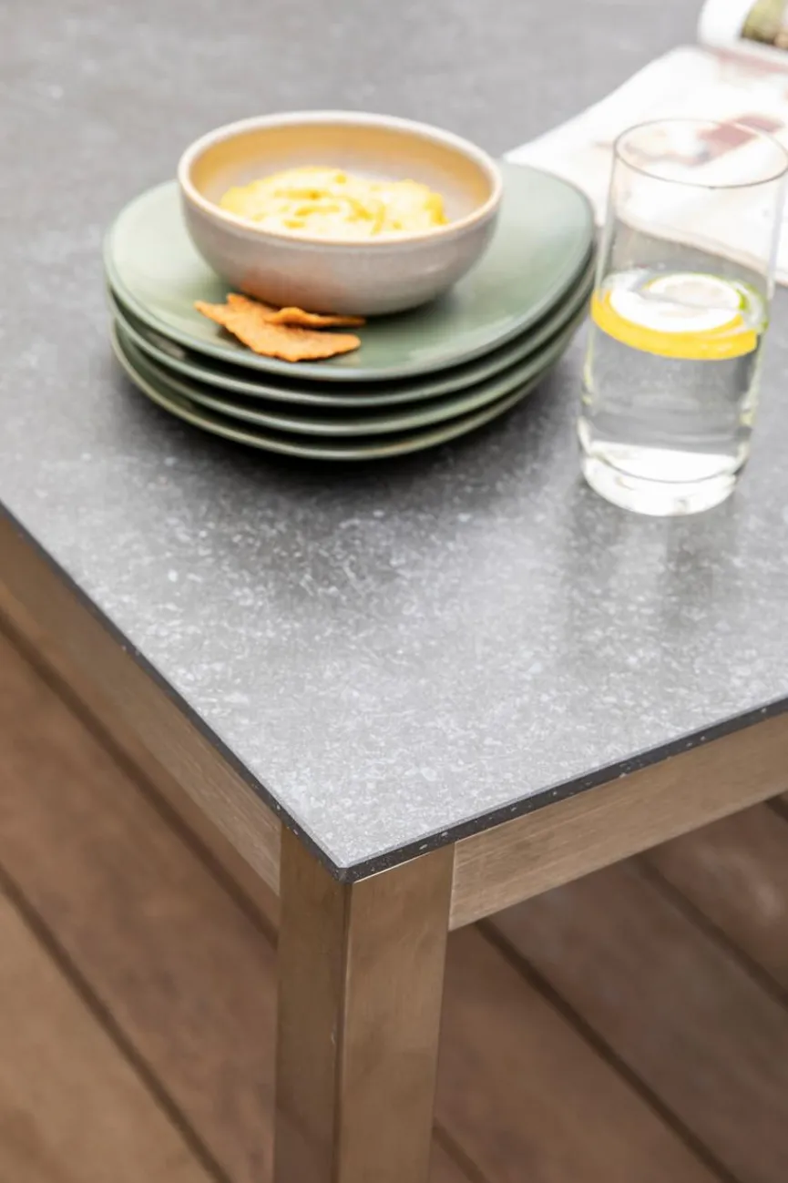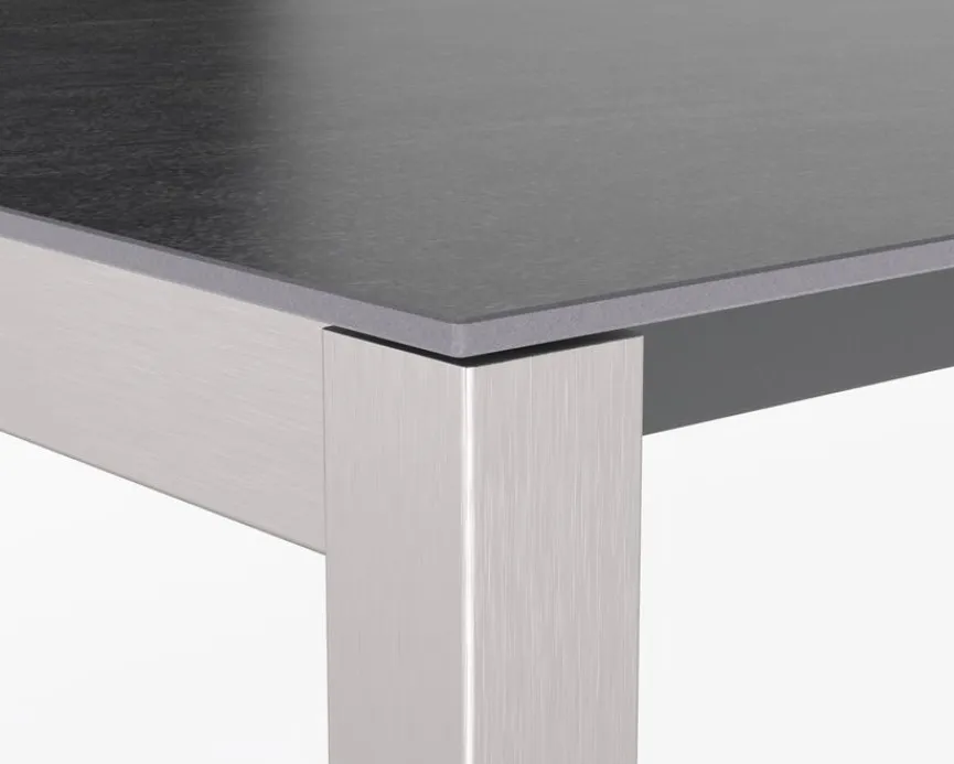 Tische mit Edelstahlgestell und einer Tischplatte aus Porzellankeramik sind bestens für den Außen- und Innenbereich geeignet. Dank der witterungs- und UV-beständigen Eigenschaften ist ein vielfältiger Einsatz möglich. Tischplatten aus Porzellankeramik überzeugen durch ihre Hitze- und Kratzunempfindlichkeit sowie durch ihre Frost-, Hitze- und Feuerbeständigkeit. Porzellankeramik ist darüber hinaus äußerst pflegeleicht und sehr hygienisch.