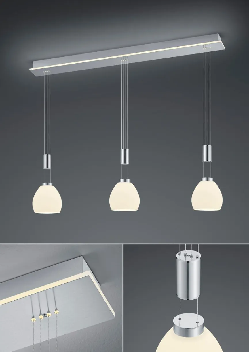 Die LED-Pendelleuchte Sam des Herstellers Hell / B-Leuchten ist vom Design her gleichermaßen eine Bereicherung für moderne und klassische Einrichtungsstile. Zudem weist die LED-Pendellampe von Hell / B-Leuchten viele funktionale Vorzüge auf. Zu nennen ist unter anderem, dass sich die LED-Pendelleuchte Sam bequem über eine Fernbedienung dimmen lässt und warmweißes Licht spendet, das aufgrund der Glasschirme absolut blendfrei ist.
