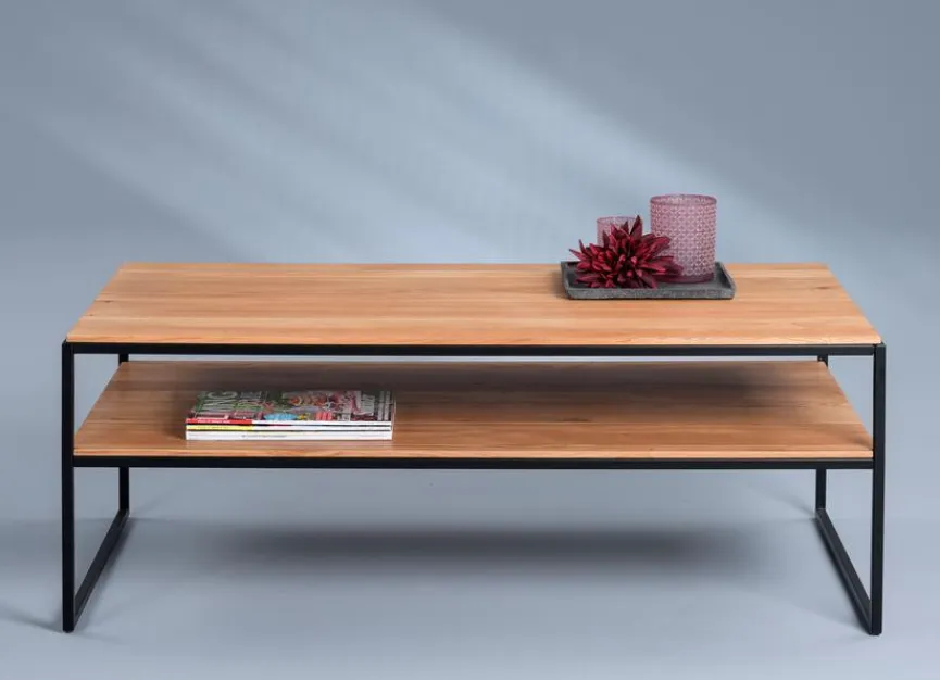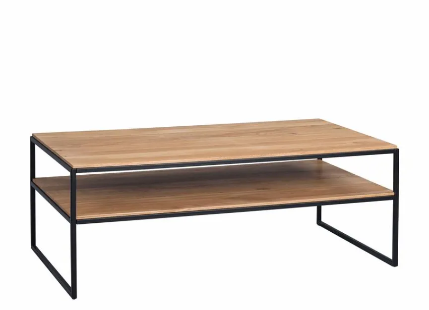 Der Couchtisch Mika überzeugt optisch mit einem geschmackvollen Design, das unter anderem durch die geölten Oberflächen entsteht. Dadurch kommen die Maserung und der Farbton des Holzes besonders zur Geltung, sodass der Wohnzimmertisch die Einrichtung sofort aufwertet. Außerdem stellt der Couchtisch Mika gleich zwei große Ablageflächen für den Alltag bereit.