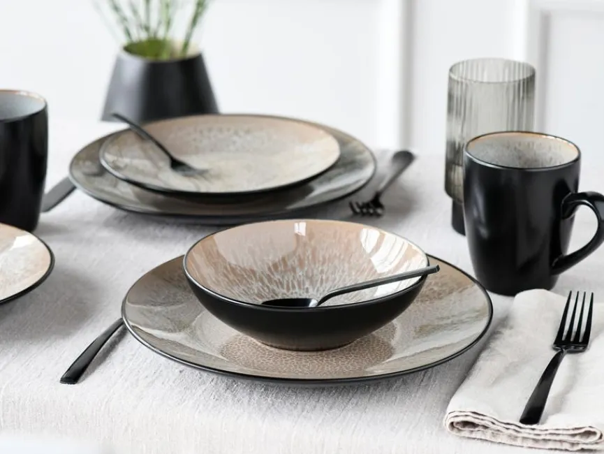 - Je 4 Speiseteller Ø 27 cm, Frühstücksteller Ø 21 cm, Müslischalen Ø 18 cm, Kaffeebecher 300 ml