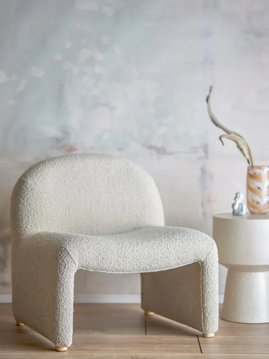 Bei Bouclé (auch Buklee genannt) handelt es sich um einen Stoff, dessen Optik und Haptik sich durch unregelmäßig verteilte Knoten, Noppen und Schlingen besonders hervortut. Er gilt als wenig empfindlich und kaum knitteranfällig.