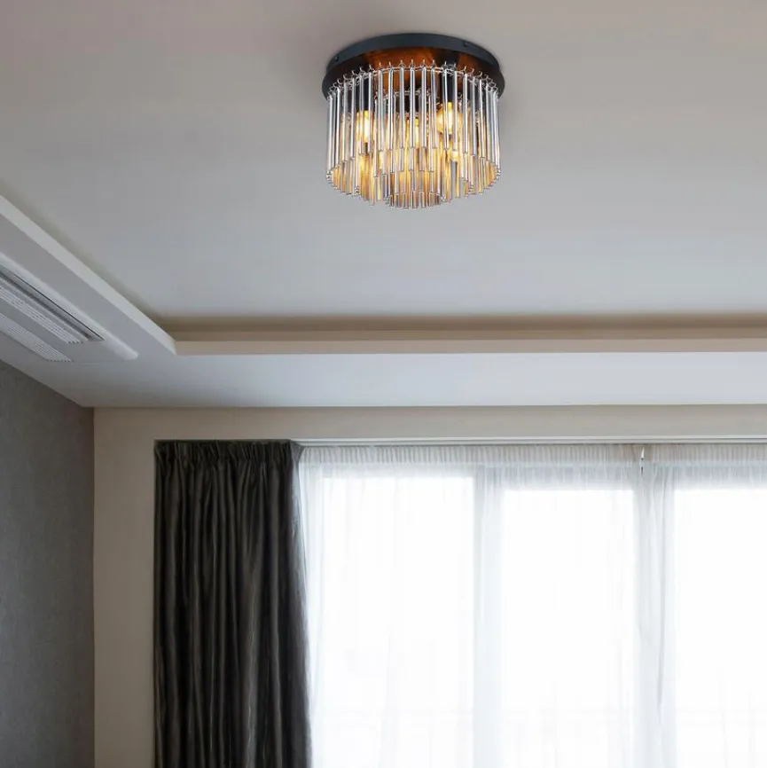 Ihr exklusives Design macht die Deckenleuchte Gorley von Globo zum schimmernden Blickfang in Ihrer Wohnung. Diese edle Deckenlampe setzt auch im unbeleuchteten Zustand einen besonderen Akzent als wunderschönes Kunstobjekt. Dank der vielen kleinen Glasstäbe schafft die Deckenleuchte Gorley eine bezauberndes Lichtspiel mit hübschen Effekten.