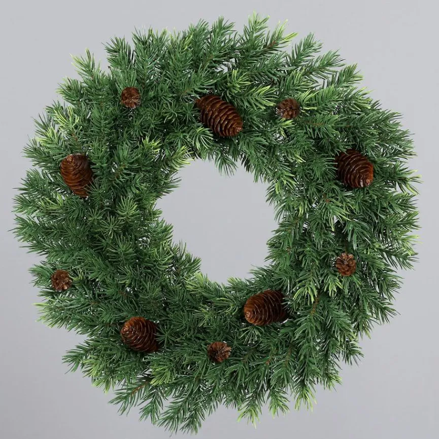 Der Deko-Kranz Ø 45 cm ist realistisch gestaltet und kann immer wieder zum Einsatz kommen. Anders als echte Tannenkränze nadelt das Accessoire nicht, und so bleibt sein Aussehen stets gleich ansprechend. Ob im Innen- oder im Außenbereich, der Deko-Kranz Ø 45 cm trägt zu einer stimmungsvollen Atmosphäre bei.