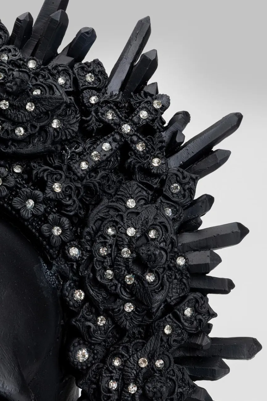 Das Deko-Objekt King Skull ist auf eine besondere Art luxuriös und anziehend. Der in edlem Tiefschwarz gehaltene Totenschädel scheint den fehlenden Unterkiefer mit einer fulminanten Krone wettzumachen und einen König oder eine Gottheit der Unterwelt zu repräsentieren. Bereichern Sie Ihr Wohnambiente mit dem Deko-Objekt King Skull um ein einzigartiges Statement-Piece.