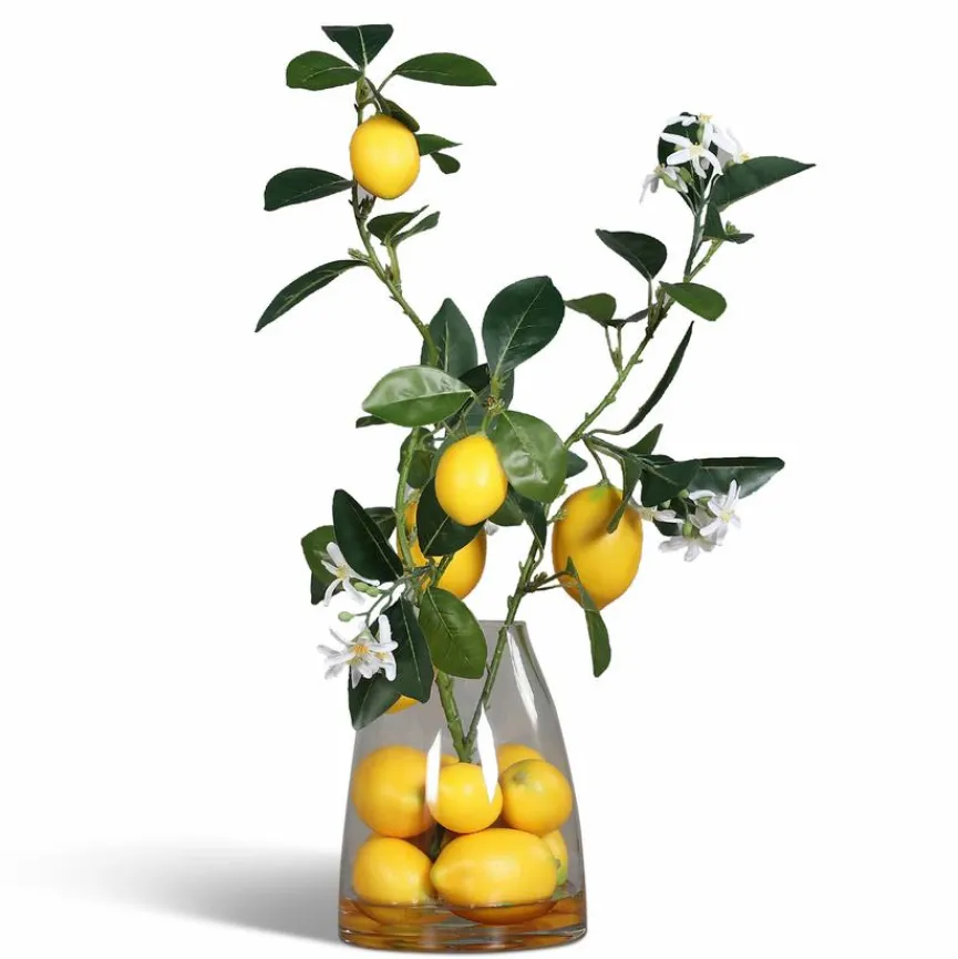Wenn Sie sich frische, von der Natur inspirierte Dekorationen wünschen, dann ist das Deko-Objekt Zitronen-Arrangement 60 cm womöglich genau das, wonach Sie suchen. Ganz egal, ob Sie Ihre häusliche Küche, ein Fensterbrett oder die Auslage Ihres Ladengeschäftes verschönern möchten – das formschöne Glas mit den äußerst authentisch wirkenden Zitrusfrüchten verfehlt seine Wirkung mit Sicherheit nicht. Kombinieren Sie das Deko-Objekt Zitronen-Arrangement 60 cm mit weiteren Kunstpflanzen.