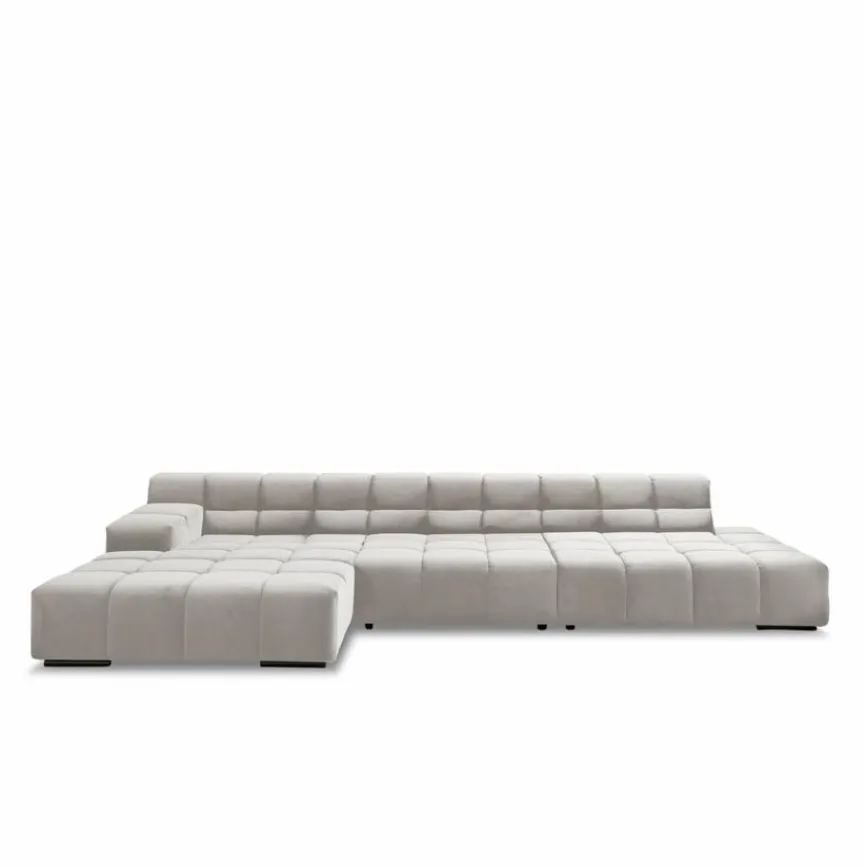 - Ecksofa besteht aus Megahocker (D021815B), Recamiere mit Armlehne links (D021121B), Element 105 ohne Armlehnen (D021117B), Element mit offenem Abschluss rechts (D021521B)
