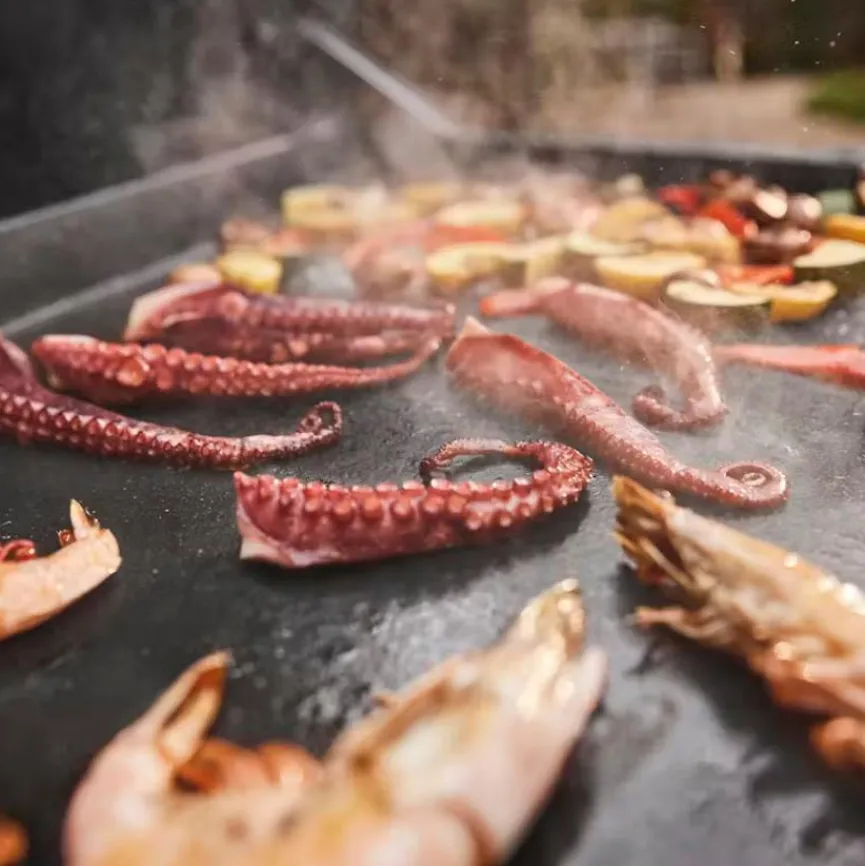 - Grill aus porzellanemailliertem Gusseisen mit 3 Brennern