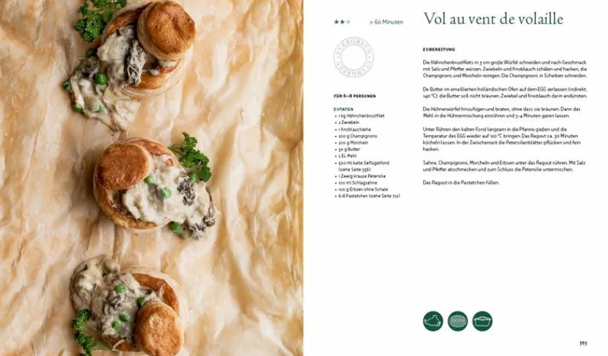 - Jegliche Rezepte für Fisch und Meeresfrüchte, Geflügel und Wild, Fleisch, Gemüse, Brot und Teigwaren, Früchte und Patteserie sowie allerlei Grundrezepte und Inspirationen