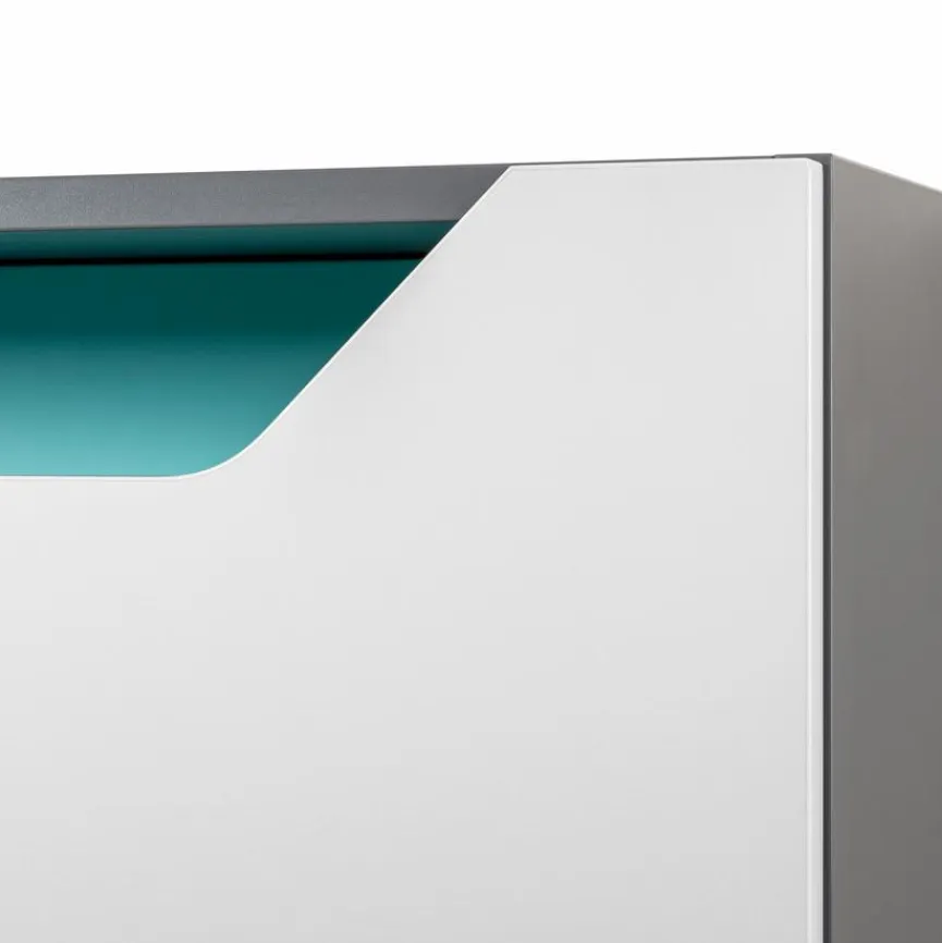 Das Hängeregal ZE+ aus dem Hause Rudolf lenkt mit einem markant gezeichneten Ausschnitt die Blicke auf sich. Eine schöne Option ist dieses geräumige Wandregal zum Beispiel für ein modernes Jugendzimmer. Hier bietet es sich an, das Hängeregal ZE+ mit weiteren Möbeln aus dieser Linie zu ergänzen.