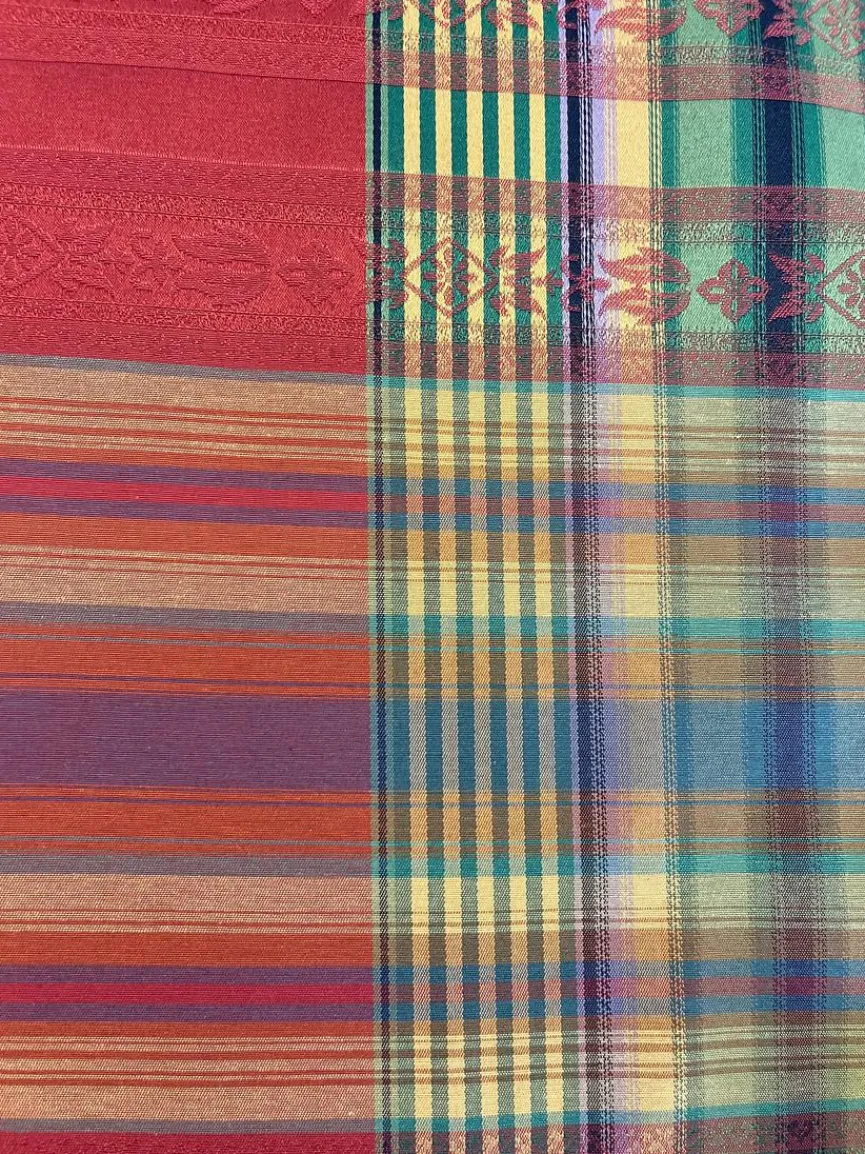 - Bezug aus Stoff (FO 229/20) in karo rot, Füße aus Buche in Kirschbaum antik