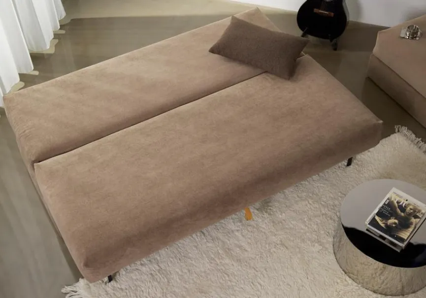 - Bezug aus Stoff (cordufine) in beige (318), Füße aus Kunststoff in schwarz, Stützfüße bei der Schlaffunktion aus Metall in schwarz