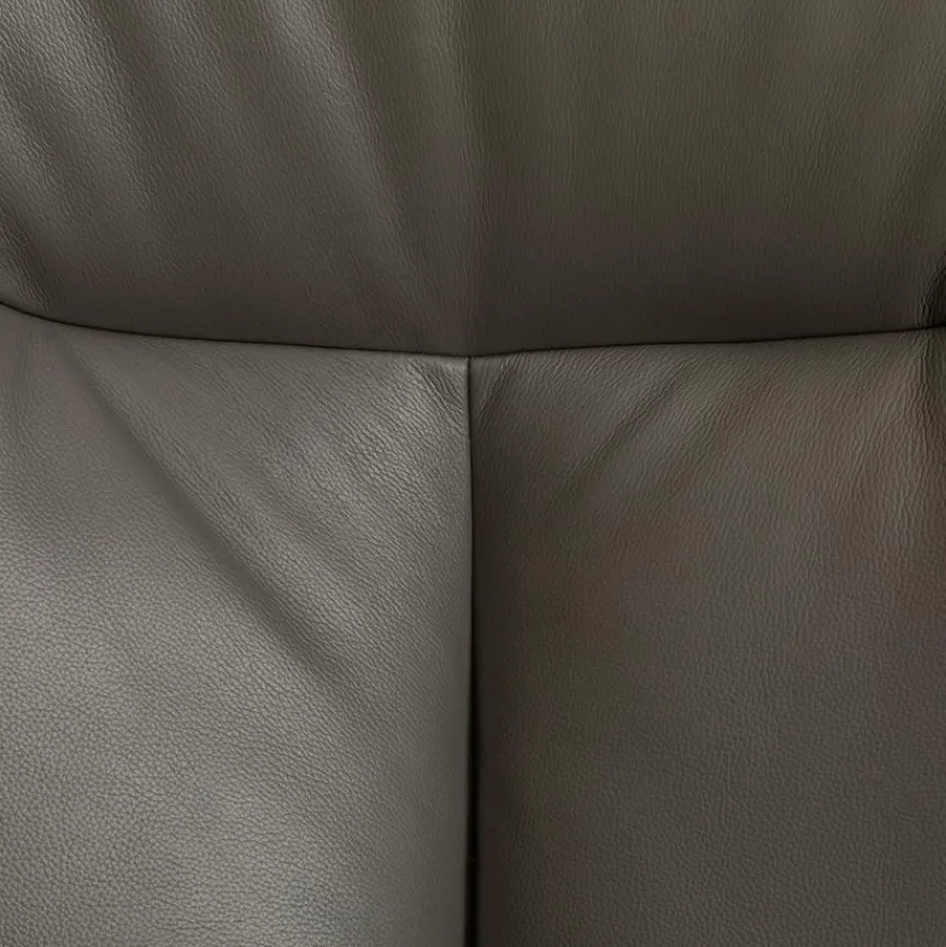 - Sitzbezug aus Leder in dunkelgrau, Korpusbezug aus Lederoptik in dunkelgrau, Fuß aus Metall in schwarz