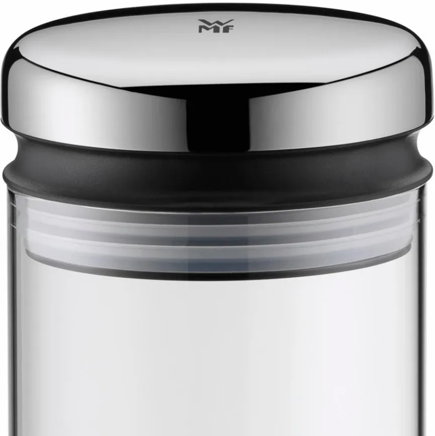 Die Vorratsdose Depot 1000 ml der Firma WMF vereint perfekt Stil und Funktion. Lebensmittel lassen sich durch die große Öffnung problemlos ein- oder nachfüllen und werden geschmacks- und aromaerhaltend aufbewahrt. Mit der Materialkombination aus Glas, Kunststoff und poliertem Edelstahl erhält die WMF Vorratsdose Depot 1000 ml ihr puristisches, edles Aussehen. Ein klarer Glaskörper sorgt für dauerhafte Hygiene und gute Sichtbarkeit der Naturalien.
