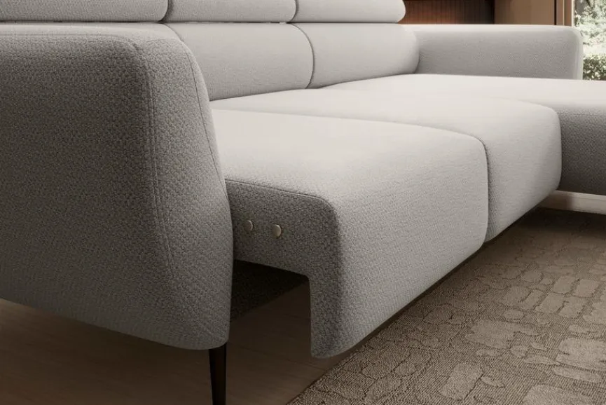 - Ecksofa besteht aus Sofa 2-Sitzer mit motorischem Sitzvorzug (2SL) Armlehne links und Ottomane mit Armlehne rechts (OTR)