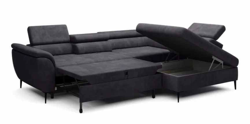 - Inkl. Schlaffunktion durch Frontauszug im 2-Sitzer und Bettkasten in der Ottomane