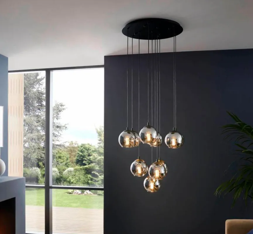 Die Pendelleuchte Ariscani aus dem Hause EGLO begeistert durch eine moderne Optik. Mit den markanten bedampften Glasschirmen und der stilvollen Aufhängung erhält die Pendellampe ein attraktives Äußeres. Des Weiteren sorgt die Pendelleuchte Ariscani von EGLO für eine gute und gleichmäßige Ausleuchtung des Raumes.