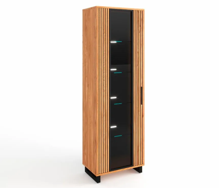 Mit der Vitrine Paula der Marke Elfo verleihen Sie Ihrem Zuhause ein ebenso trendbewusstes wie robustes Ambiente. Die Glasvitrine bietet Ihnen mit vier Einlegeböden jede Menge Platz für lieb gewonnenes und überzeugt optisch mit Ihrer Kombination aus dunklem Glas und kernigem Holz. Am besten passt die Vitrine Paula damit zu trendbewussten Einrichtungskonzepten und natürlichen Materialien.