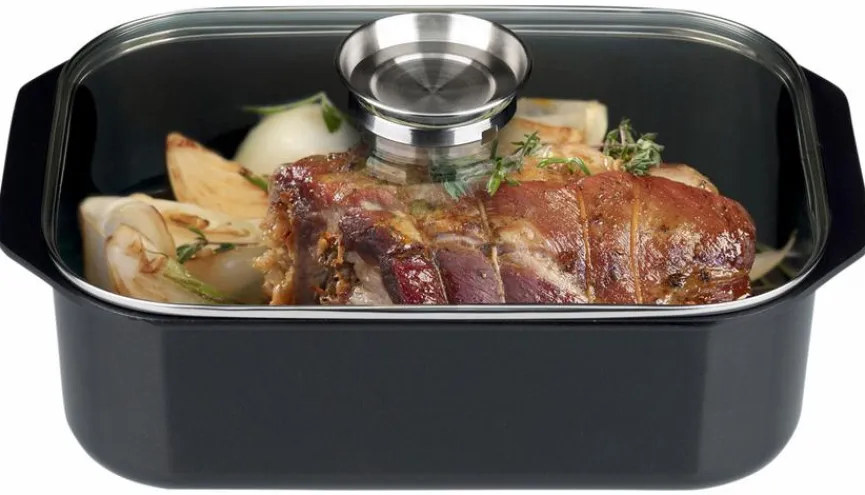 - Artikel beinhaltet je 1x Rechteckbräter, Deckel mit Aromaknopf