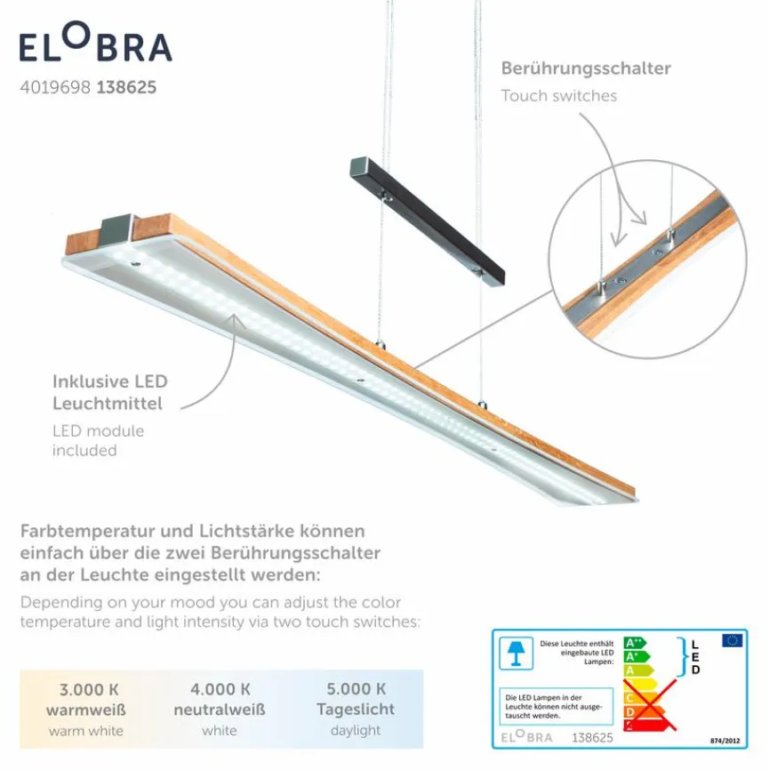 - Mit 4-fach Tastdimmer an der Leuchte