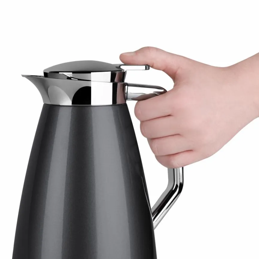 Mit der Isolierkanne Plaza von Emsa behalten Ihre Getränke unterwegs länger die richtige Temperatur. Dank des patentierten Quick Tip-Verschlusses lässt sich die Kanne schnell öffnen, das Befüllen und Ausgießen ist so besonders leicht. Außerdem zeichnet sich die Isolierkanne Plaza von Emsa durch eine stilvolle Optik aus.