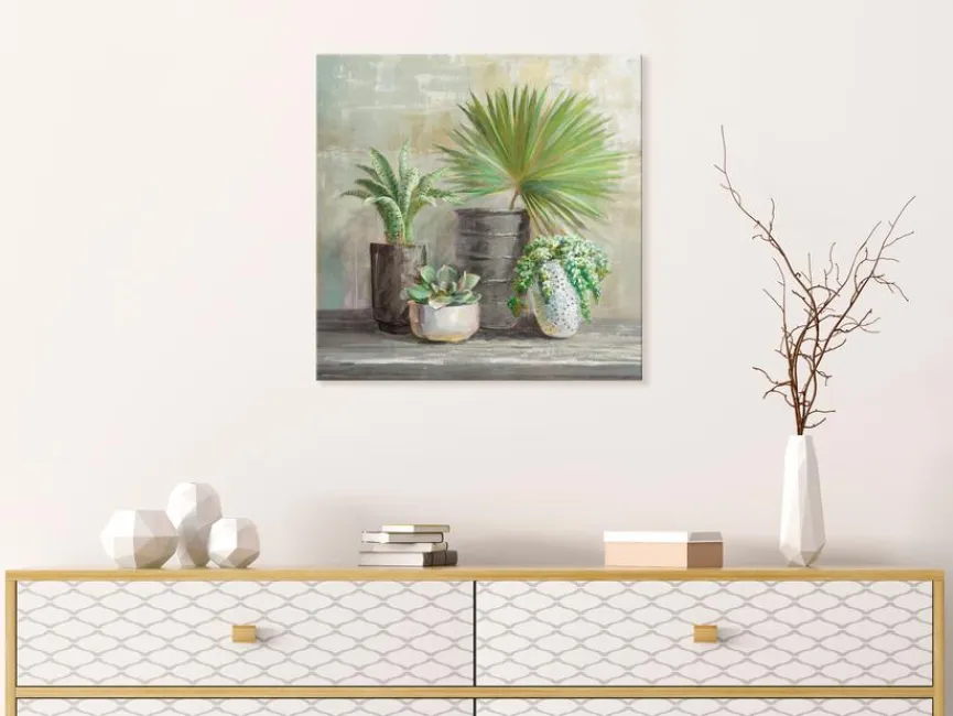 Mit dem Wandbild 55×55 cm Indoor Garden aus dem Hause Reinders zieht frische Stimmung in Ihrer Wohnung ein! Dieses hübsche Deko-Bild begeistert mit seinen edlen Farben, der einzigartige Malweise und den schönen Topfpflanzen. Das Wandbild 55×55 cm Indoor Garden eignet sich perfekt, um Ihrem Lieblingszimmer einen harmonischen Touch zu verleihen.