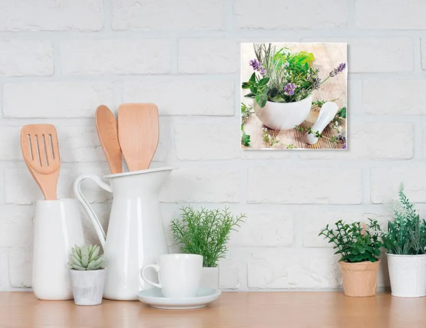 Mit dem Glasbild 20×20 cm Fresh herbs II aus dem Hause EUROART bringen Sie natürlichen Charme in Ihre vier Wände! Es zeigt eine mit Kräutern gefüllte Schale und steckt voller Duft und Energie. Das Glasbild 20×20 cm Fresh herbs II von EUROART eignet sich ideal als Deko für die Küche und sieht auch im Badezimmer wunderschön aus.