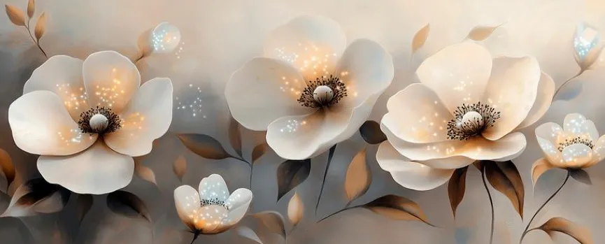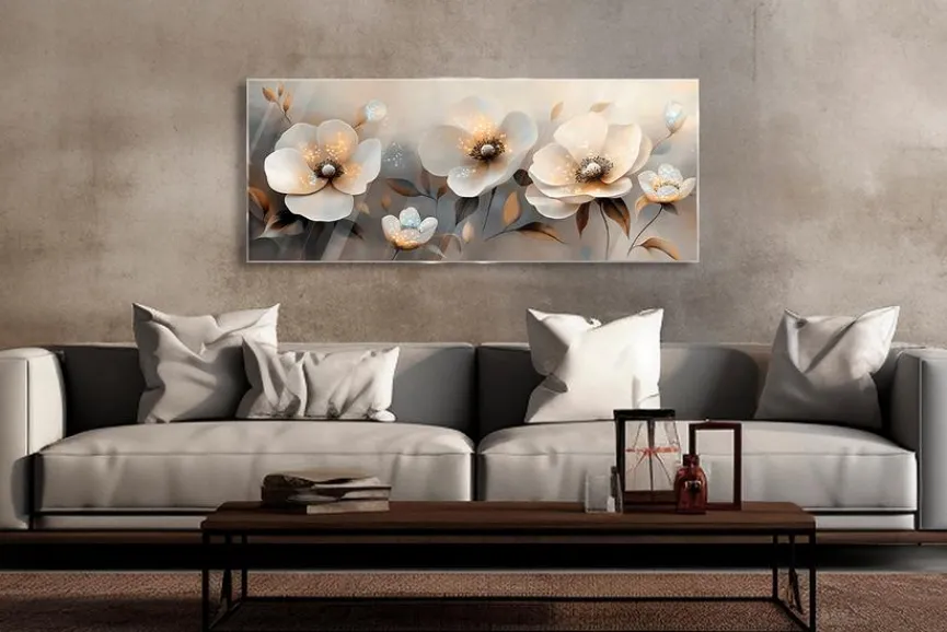 Für eine harmonische und zeitlose Einrichtung empfiehlt sich das EUROART Glasbild 50×125 cm White Flowers On Gray II. Die unaufdringliche, aber zeitgleich ansprechende Farbgestaltung im floralen Muster passt sich jedem Einrichtungsstil an. Das Glasbild 50×125 cm White Flowers On Gray II strahlt Eleganz und Ruhe aus und verleiht jedem Raum das gewisse Flair.