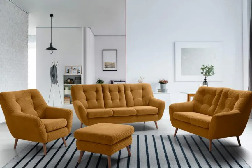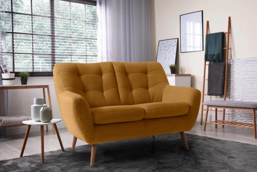 - Bezug aus Cord (Lincoln) in mustard (48N), Füße aus Massivholz in Eiche geölt
