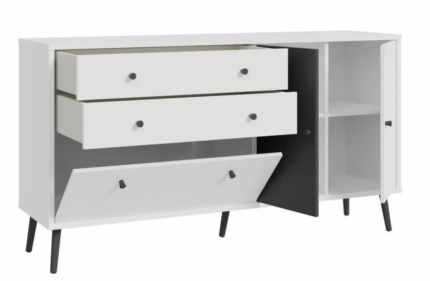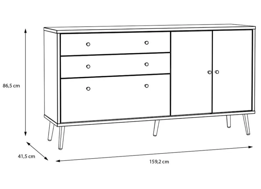 - Mit 2 Türen, 2 Schubkästen und 1 Klappe