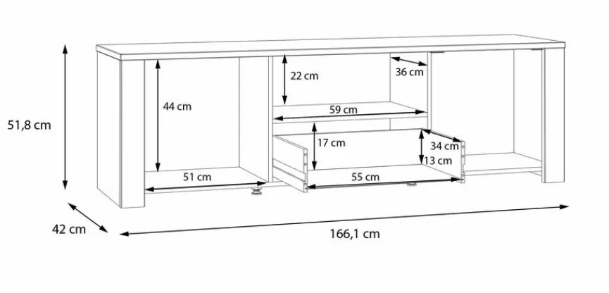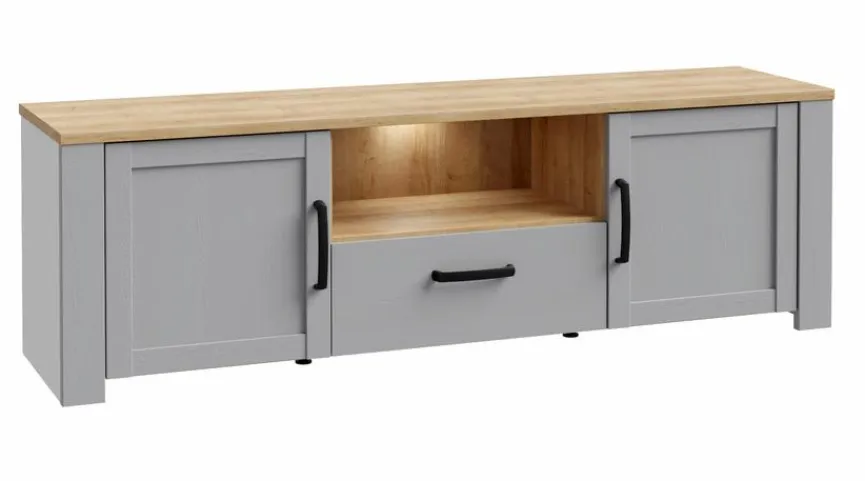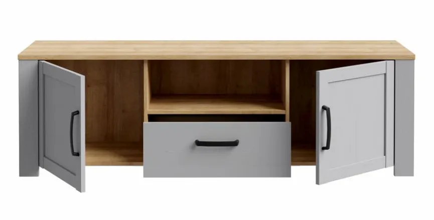 - Mit 2 Türen, 1 Schubkasten und 1 offenen Fach