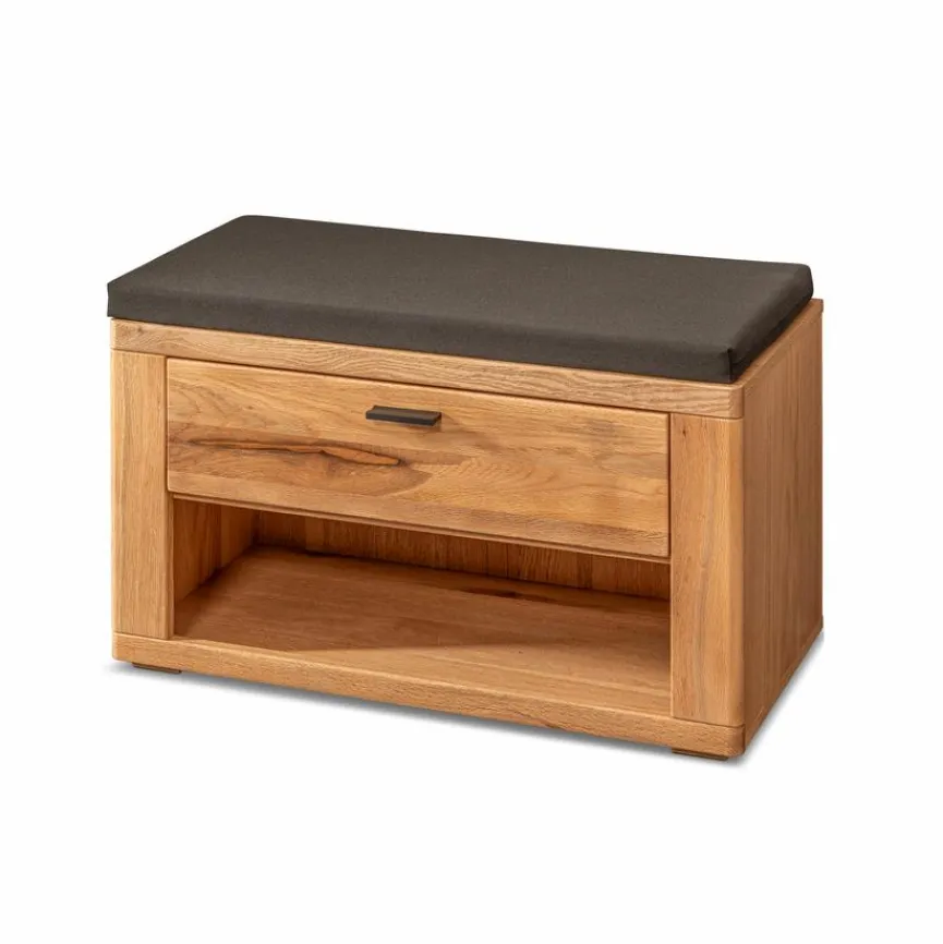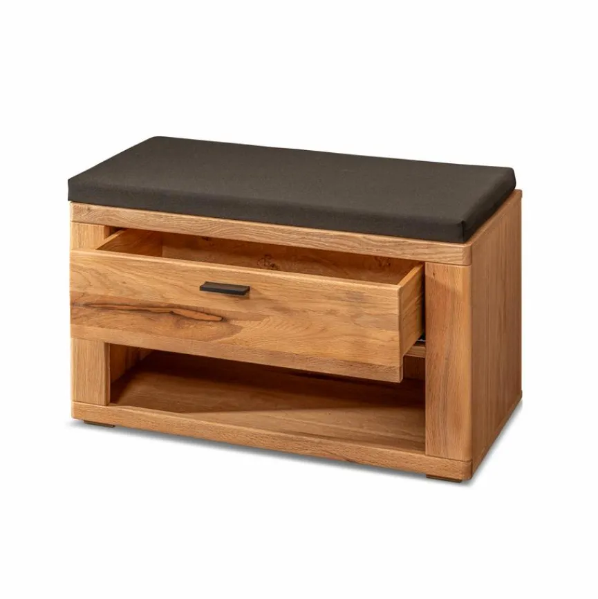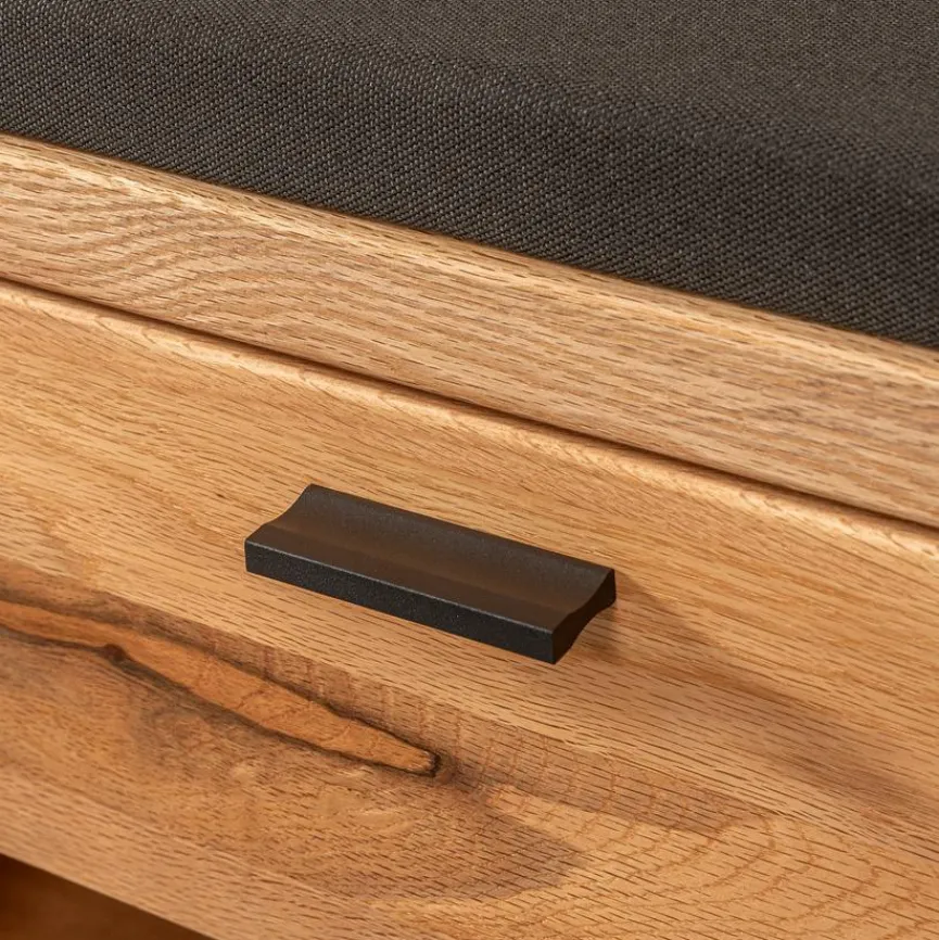 Gestalten Sie Ihr Zuhause natürlich und modern mit der Garderobenbank Graz. Die Umkleidebank vereint einen warmen, ästhetischen Look mit praktischem, funktionalem Nutzen. In der Schublade der Garderobenbank Graz lassen sich Accessoires, Schuhputzzeug oder sonstige Dinge aufbewahren, und das Sitzpolster lädt dazu ein, bequem Platz zu nehmen und Schuhe anzuziehen.